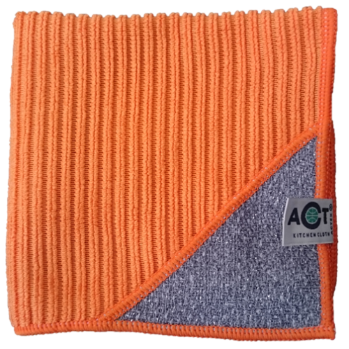 Dvostranska kuhinjska blazinica je na eni strani izdelana iz sivih antibakterijskih mikrovlaken, druga stran pa je iz PP inovativnega materiala in je odlična za pomivanje posode. Učinkovito nadomešča običajne gobice za pomivanje posode in omogoča prihranek pri porabi sredstev za pomivanje posode. Je antibakterijsko obdelana, zato ne oddaja slabih vonjav. Operete jo lahko v pralnem stroju z ostalimi izdelki iz mikrovlaken.